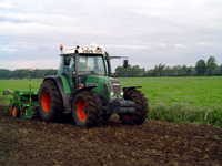 Een goed zaaibed is een eerste vereiste voor een vlotte kieming en opkomst van het gras of mais. Een vlakke ondergrond en voldoende losse grond om het zaad af te dekken zijn hierbij van wezenlijk belang. Grondsoort en vochtgehalte bepalen het tijdstip en de wijze van uitvoering van de zaaibedbereiding. Belangrijk is het aantal bewerkingen zo klein mogelijk te houden, ook hier geldt het uitgangspunt ‘overdaad schaadt’. Om goed zaaiwerk te leveren is het belangrijk dat er voldoende droge, goed verkruimelde grond in het zaaibed aanwezig is. Het zaaibed moet van een niet te fijne structuur zijn, om verslemping en winderosie tegen te gaan. Het zaaibed dient 3 tot 4 cm dik te zijn en op een vlakke, stevige en enigszins vochtige ondergrond te liggen. Uiteraard dient voor elke grondsoort de grond bekwaam te zijn voor bereiding en berijding. In zo min mogelijk werkgangen het zaaibed klaar leggen, om insporing en verdichting van de grond te beperken. Insporing en verdichting veroorzaken onregelmatige gewassen met een ongunstig gevolg voor de opbrengst. De trekker is voorzien van lage bandspanning door brede banden of dubbellucht op een lage spanning (0,4 bar). De zaaibedcombinatie met een werkbreedte van 3,5 meter is voorzien van een rubber rol om een egale dikte van het zaaibed te realiseren. Op deze manier kan men in één werkgang vooral ook de onderkant van het zaaibed vlak krijgen.
